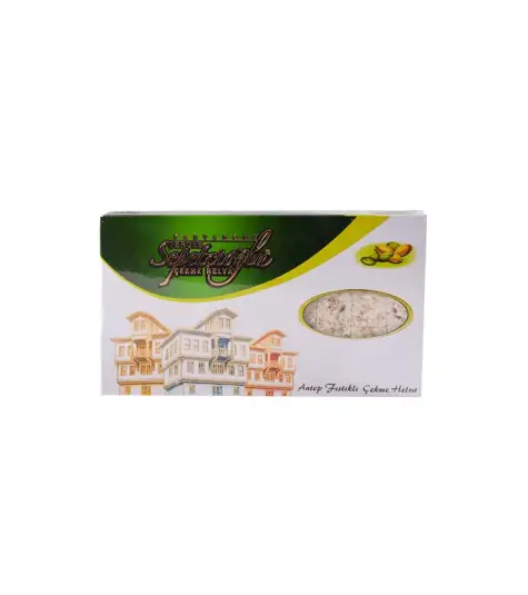 Antep Fıstıklı Çekme Helva (TR) İçindekiler:Buğday unu, toz şeker, bitkisel margarin, antep fıstığı (%2,5),asitliği düzenleyici (sitrik asit E330); Alerjen Uyarısı:Gluten, antep fıstığı içerir; İz miktarda tereyağı, fındık, badem içerebilir; Özel Muhafaza/Kullanım Koşulları: Güneş ışığından uzak serin ve kuru ortamda ambalajı kapalı olarak muhafaza ediniz; Doğrudan Tüketime Uygundur; Tavsiye Edilen Tüketim Tarihi (TETT) ve Parti Numarası ambalaj üzerindedir; Türk Gıda Kodeksi’ne Uygun Olarak Üretilmiştir; İşletmemizde ISO 9001:2015 Kalite Yönetim Sistemi, ISO 22000:2018 Gıda Güvenliği Yönetim Sistemleri'ne uygunluğu belgelendirilmiş tesiste üretilmiştir; Ürünlerimiz fabrikamızdan, en taze haliyle gönderilir;