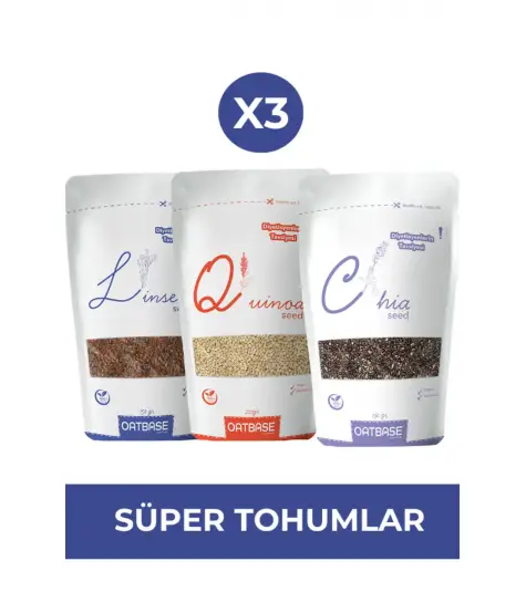 Oatbase Süper Tohumlar Seti | Chia – Keten – Kinoa 3x200 G | Glutensiz – Katkısız – Doğal